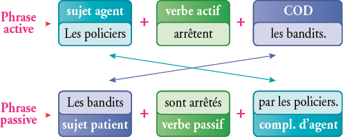 Active and passive forms of the verb. La voix passive est le contraire de la voix active. A noter aussi que pendant le passage de la voix active à la voix passive il peut y avoir un changement au niveau des pronoms personnels.